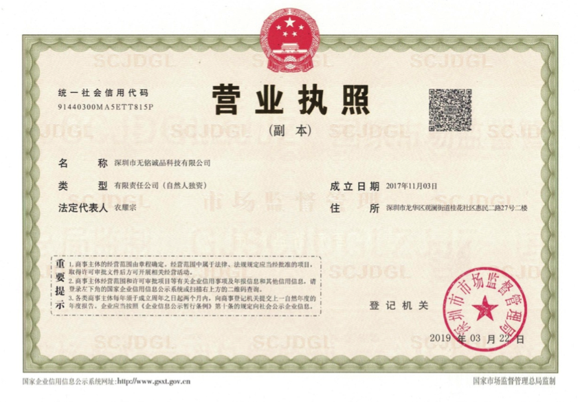 营业执照Business License: